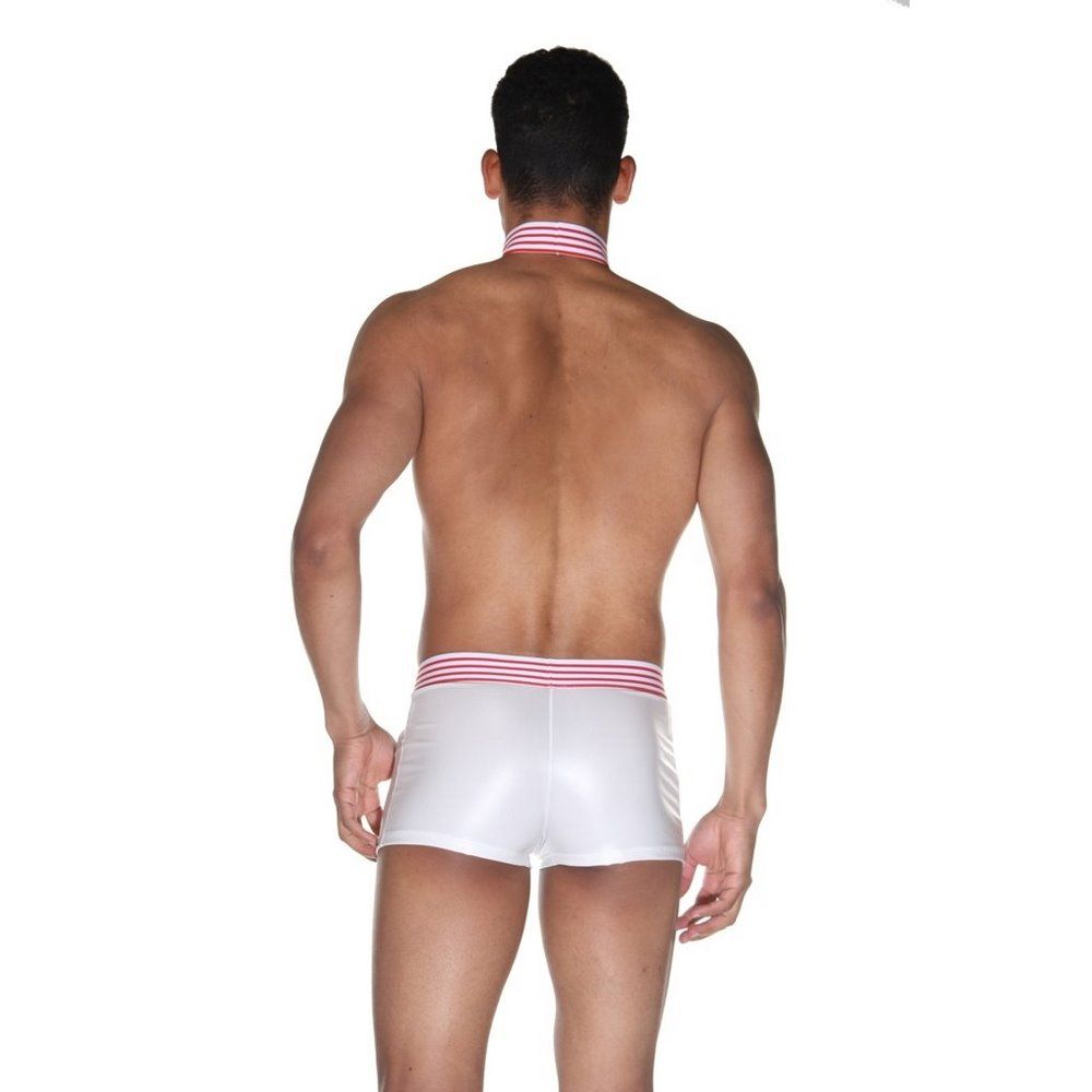 Мужской костюм «Доктор». Состоит из белых трусов-боксеров на широкой резинке в красную полоску и галстука. Ткань трусов гладкая, блестящая и эластичная. В комплекте: трусы, галстук.