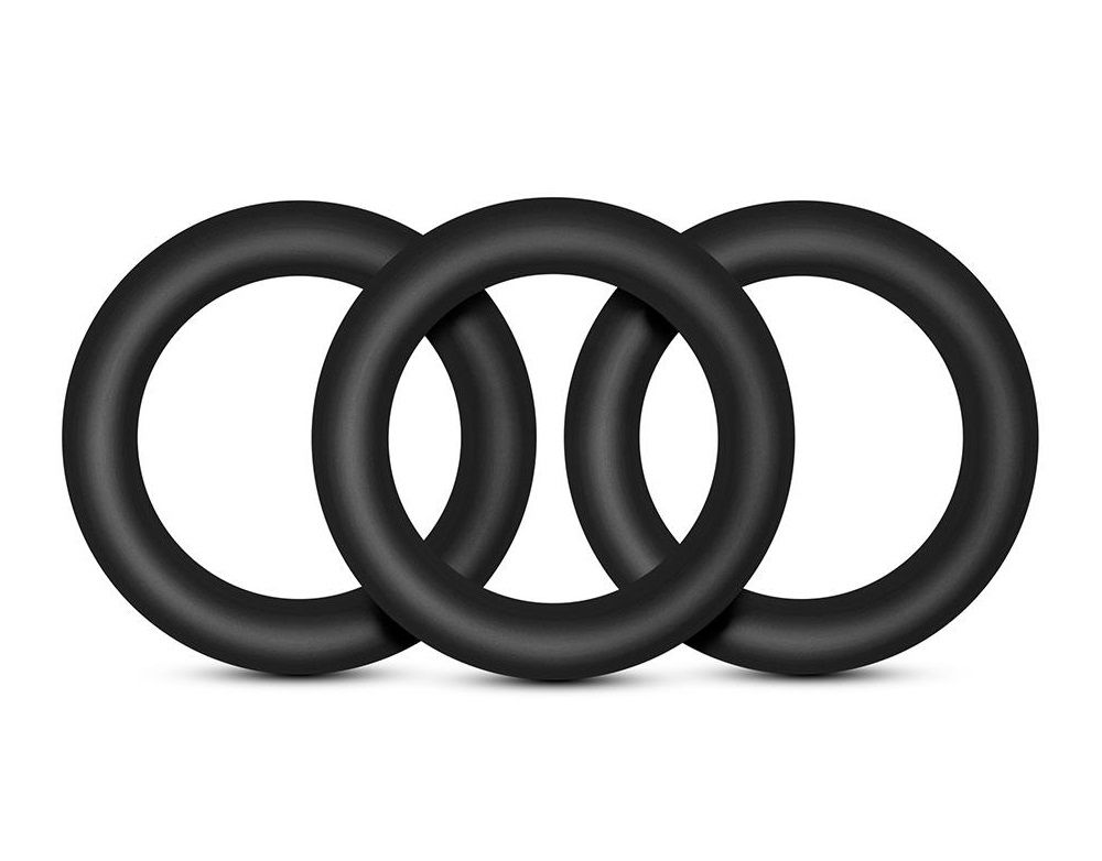 Набор из 3 черных эрекционных колец Black Small Penis Rings. Эластичные и плотно облегающие. Можно использовать по одному или все вместе.