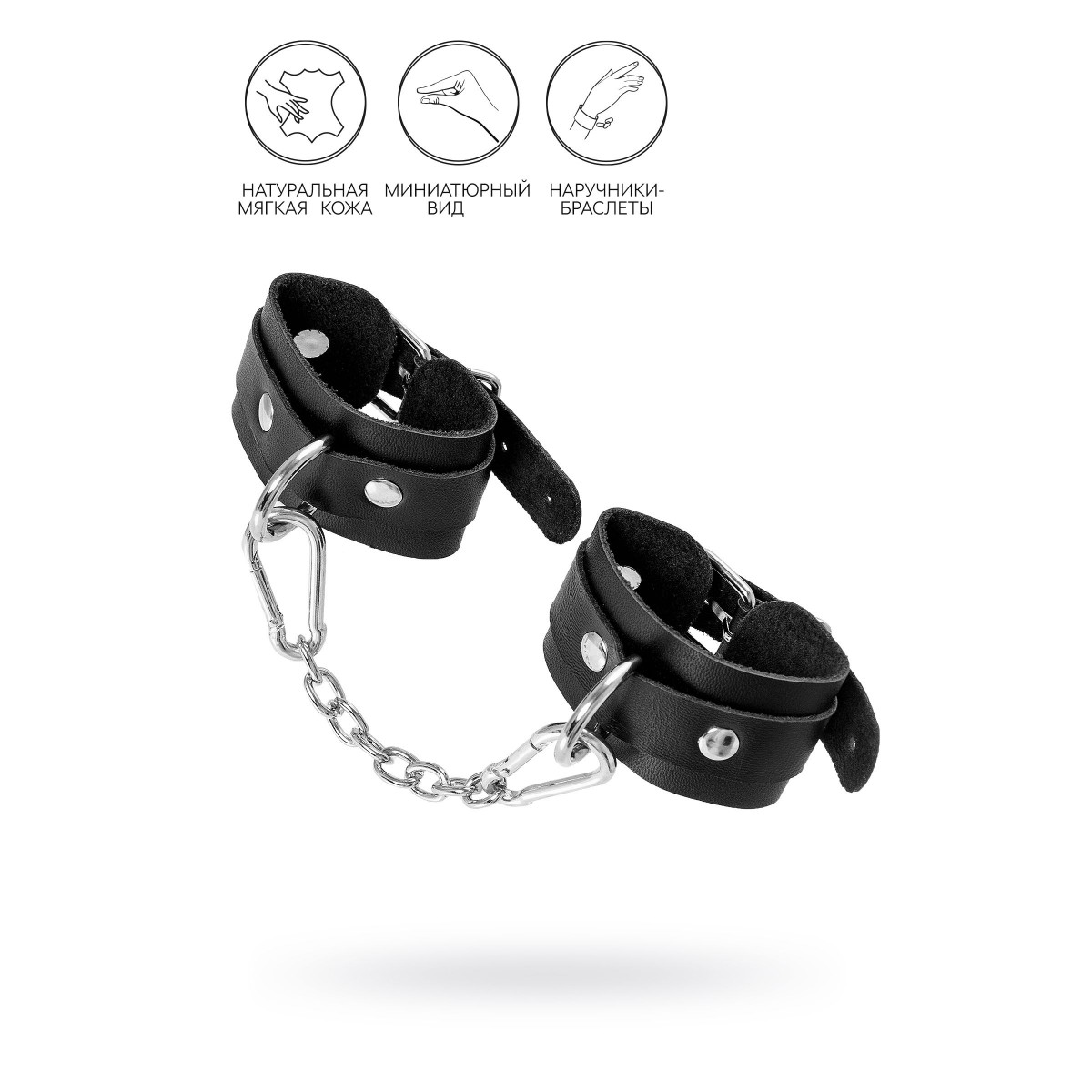 Ищите наручники для миниатюрной ручки? Тогда обратите внимание на эту модель от российского производителя Pecado. Они идеально созданы для обладательниц узкого запястья. Каждый элемент аксессуара изготовлен полностью вручную. Мягкий, чёрный материал нежно обхватывает руку и оставляет только приятные ощущения от контакта с телом. Аксессуар декорирован качественной фурнитурой, благодаря которой, при необходимости, его легко снять. Соединяются между собой с помощью короткой стальной цепочки и двух колец с карабинами. При правильном использовании не оставляют следов на теле. А особый аромат натуральной кожи придает пикантности сексуальному атрибуту. Подходит как для начинающих пар, так и для ценителей БДСМ-игр. Погрузитесь в мир пикантных удовольствий! Вместе с Pecado. Длина манжет – 15 см, ширина – 4 см. Длина сцепки – 14 см.