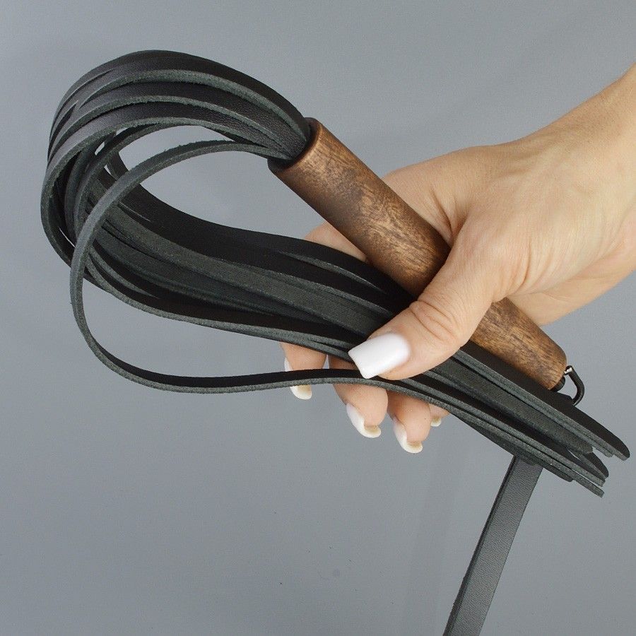 Плеть состоит из деревянной рукояти и ударной части из натуральной кожи черного цвета. Количество хвостов - 14 штук. Длина ударной части - 30 см. Длина ручки - 14 см, диаметр - 2,1 см.